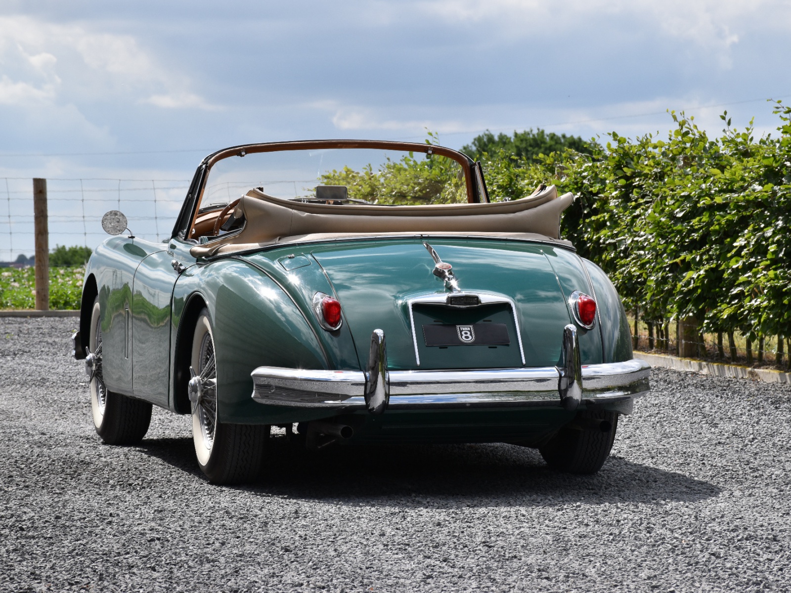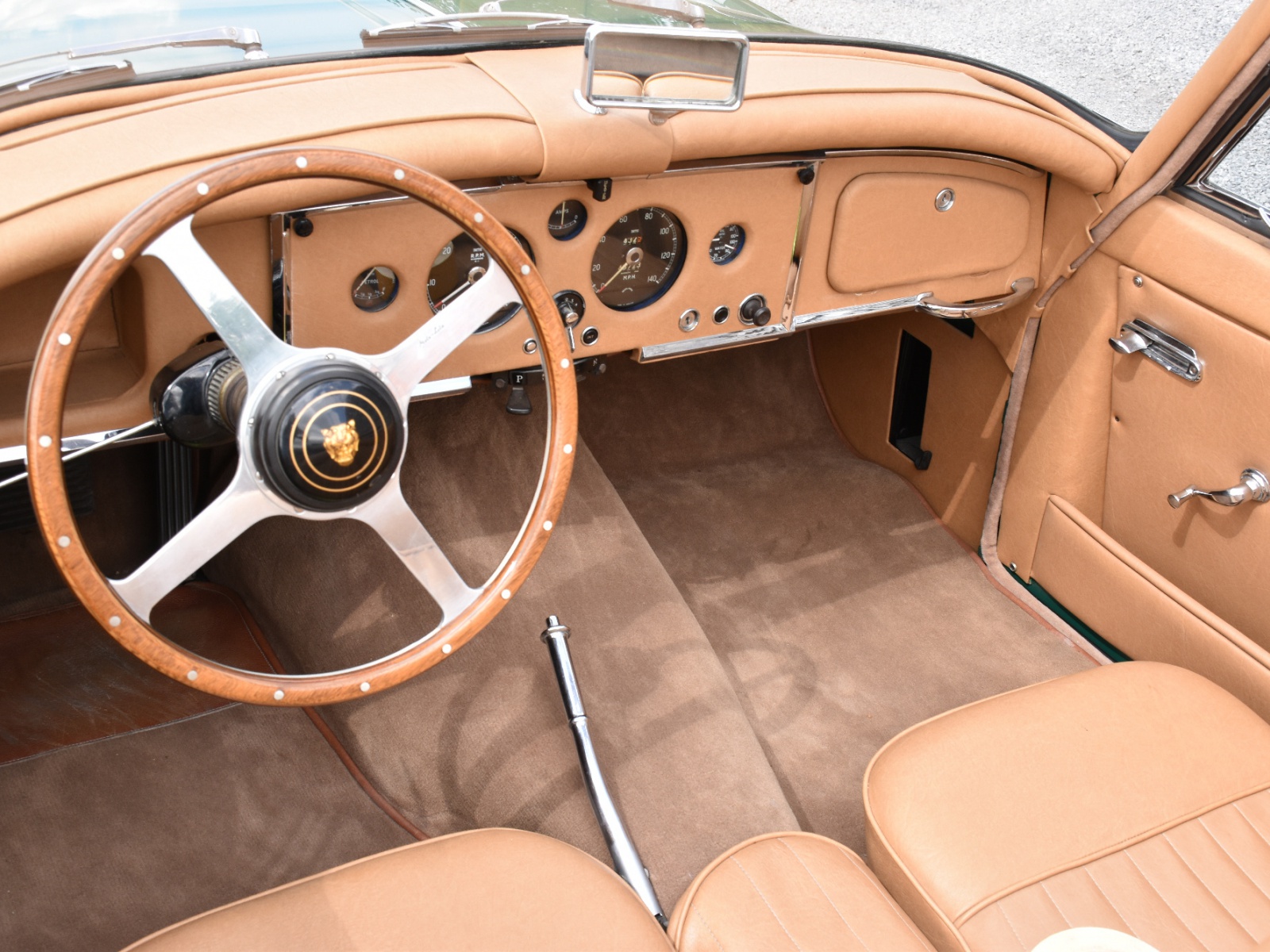 The silky smooth Borg-Warner automatic transmission makes this XK150 an easy to drive, excellent cruising car in any traffic conditions. The exterior is further enhanced with chrome wire wheels and set of new white-wall tyres which make an excellent contrast with the white paint work.